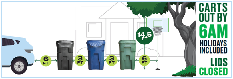 Place carts at curb no later than 6 a.m. on your scheduled collection day (holidays included)