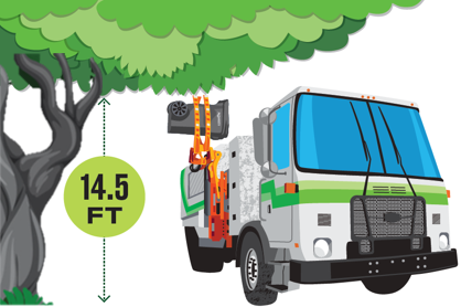- Provide overhead clearance of 14.5 feet for carts. Keep trees trimmed to at least 14.5 feet and do not place carts under low awnings, utilities wires, etc.