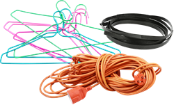 No hangers, cords, hoses, plastic packaging straps. Because these items get tangled in the recycling processing equipment. Reuse or dispose of in your Garbage cart.