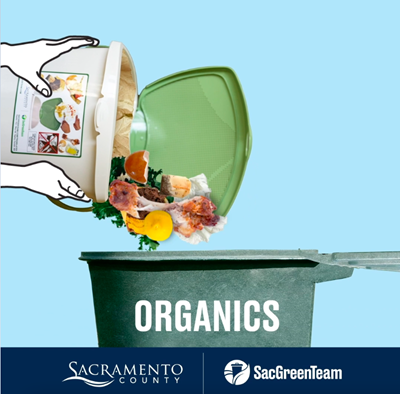 California law, Senate Bill 1383 (2016), requires that organic materials are kept out of landfills. All residents must separate organics from their garbage and put food scraps, food-soiled paper, and yard trimmings in the Organics cart (formerly the Green Waste cart) for weekly collection.