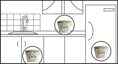 Store kitchen container in a convenient location (under sink, on the countertop, or in the refrigerator or freezer).
