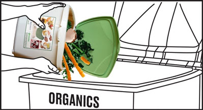 - Freeze/refrigerate scraps before adding to the Organics cart
